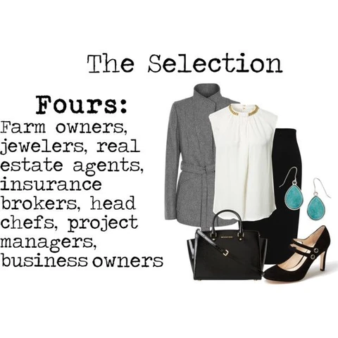1.kasta - Šlechtická krev a náboženské figury. Královská rodina a všichni její potomci automaticky patří mezi První. Do této kasty také logicky spadá výherkyně Selekce spolu s její rodinou. První mají největší majetek i moc, ale jsou taky ti, kterým padá na hlavu veškerá zodpovědnost.